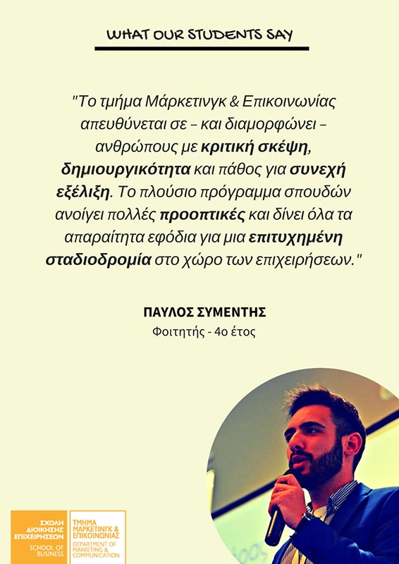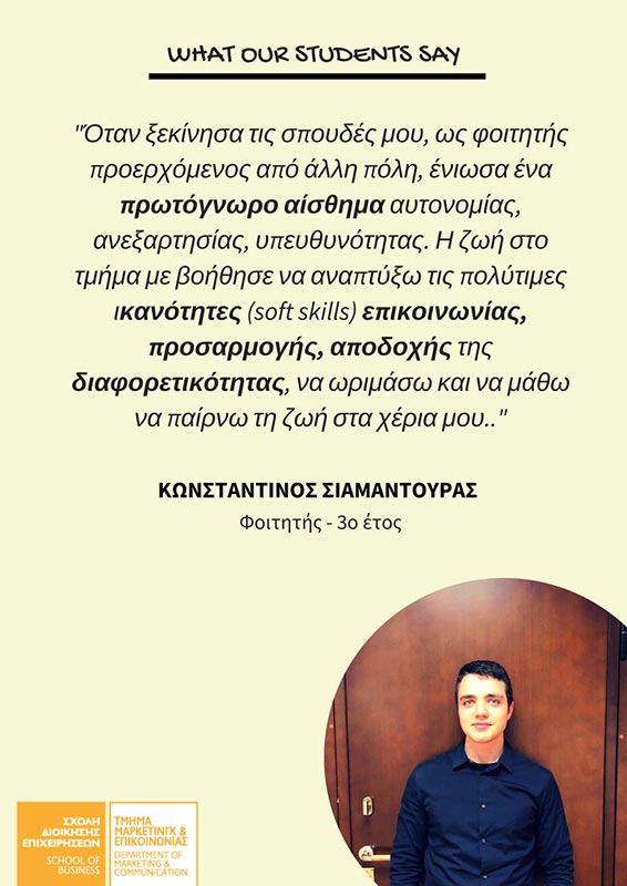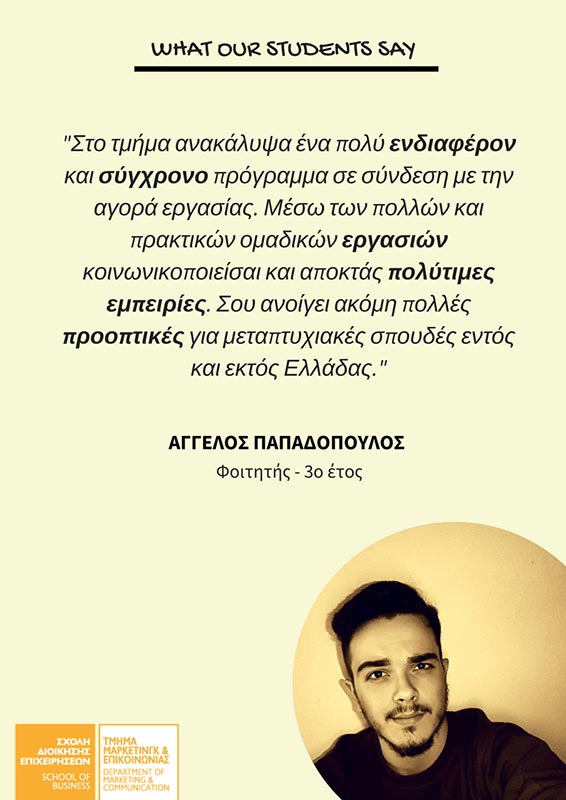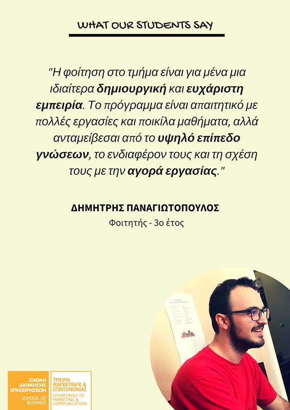 Η επιλογή του τμήματος Μάρκετινγκ και Επικοινωνίας για την πραγματοποίηση των προπτυχιακών σπουδών μου ήταν η καλύτερη...
