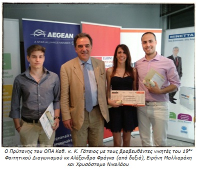 Στην τελετή παραβρέθηκε ο Πρύτανης του ΟΠΑ Καθηγητής κ. Κ. Γάτσιος, ο οποίος ευχήθηκε στους νικητές του Διαγωνισμού να αποδείξουν ότι η νεότερη γενιά μπορεί να δημιουργήσει κάτι καλύτερο.